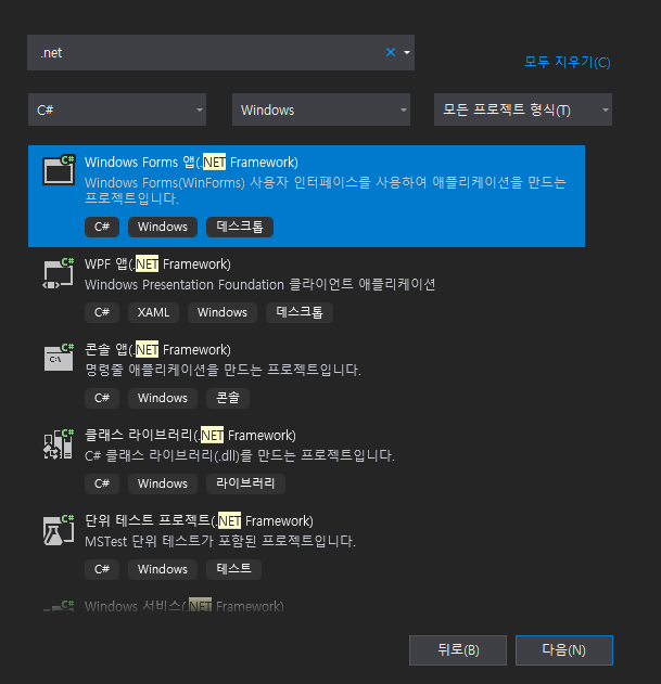 Visual Studio -> Windows Forms 앱 (.NET Framework)
