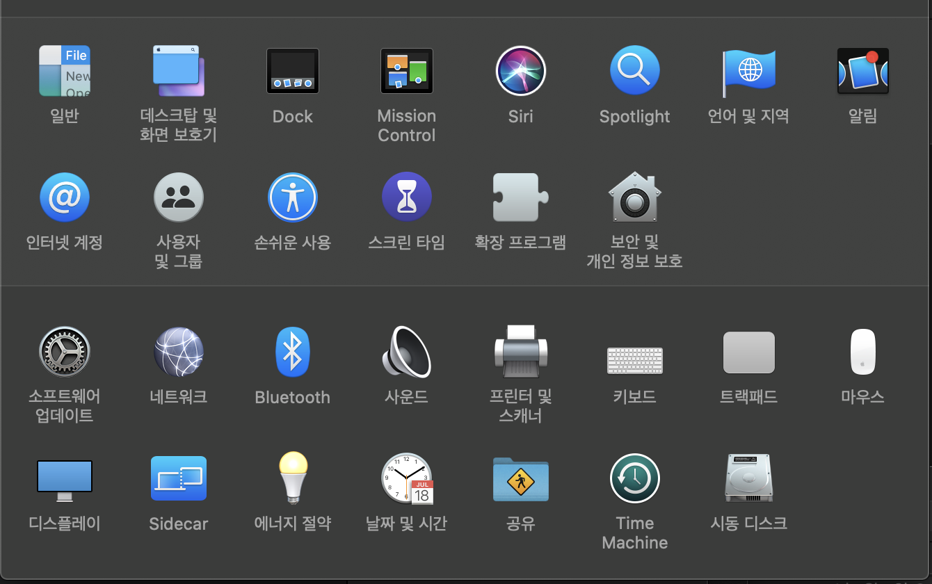 이럴 경우, mac의 대부분의 설정 변경이 가능한 환경설정을 들어갑니다.