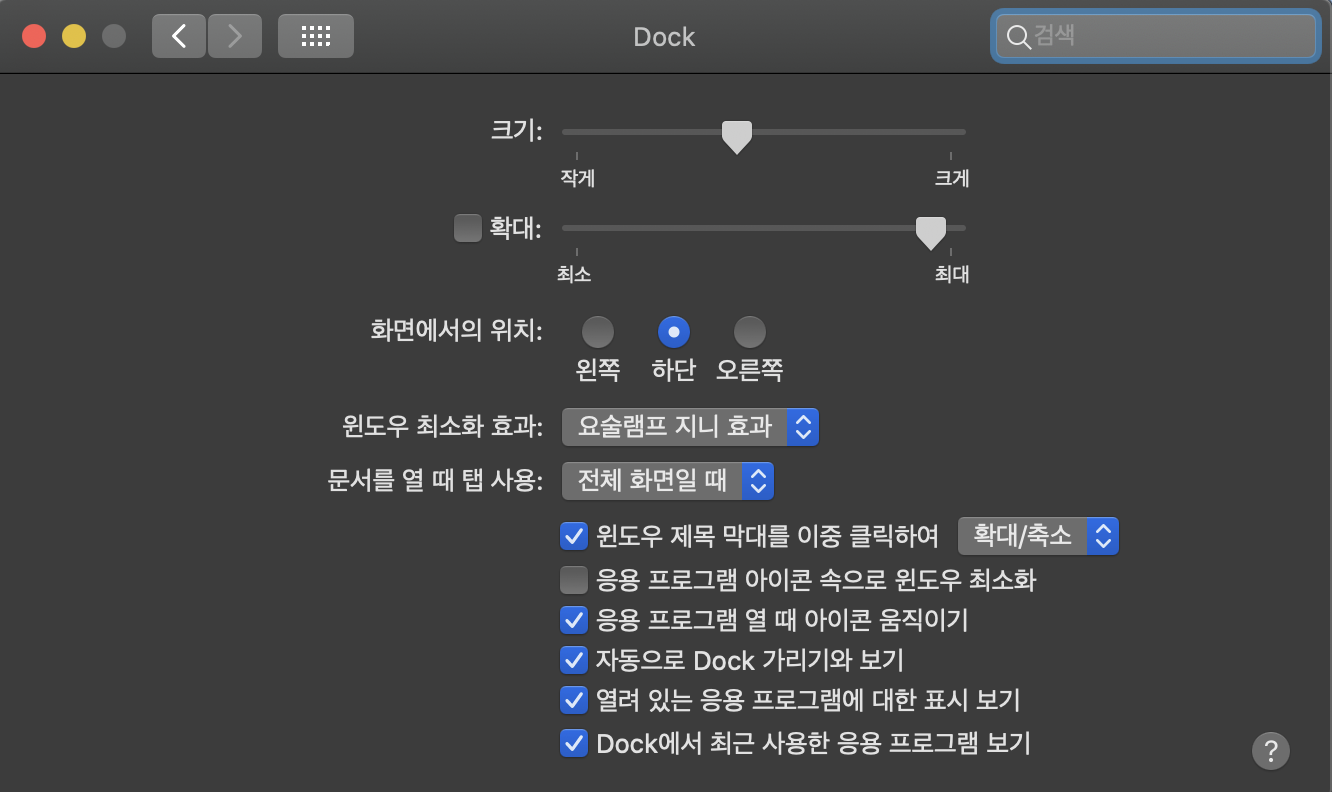 '자동으로 dock 가리기와 보기'가 편하더라구요
