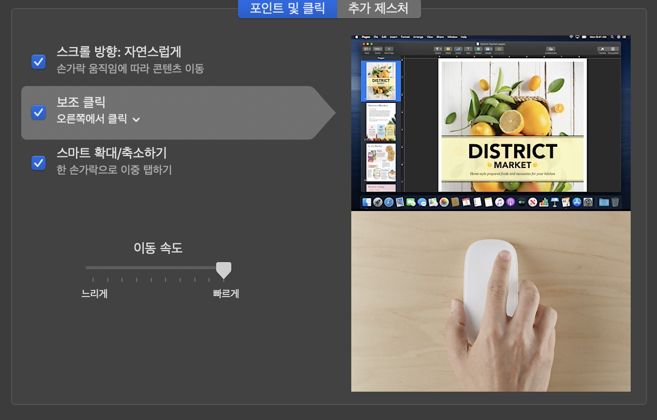 이때 마우스 우클릭의 경우 포인트 및 클릭 > 보조 클릭 으로 가능합니다!
