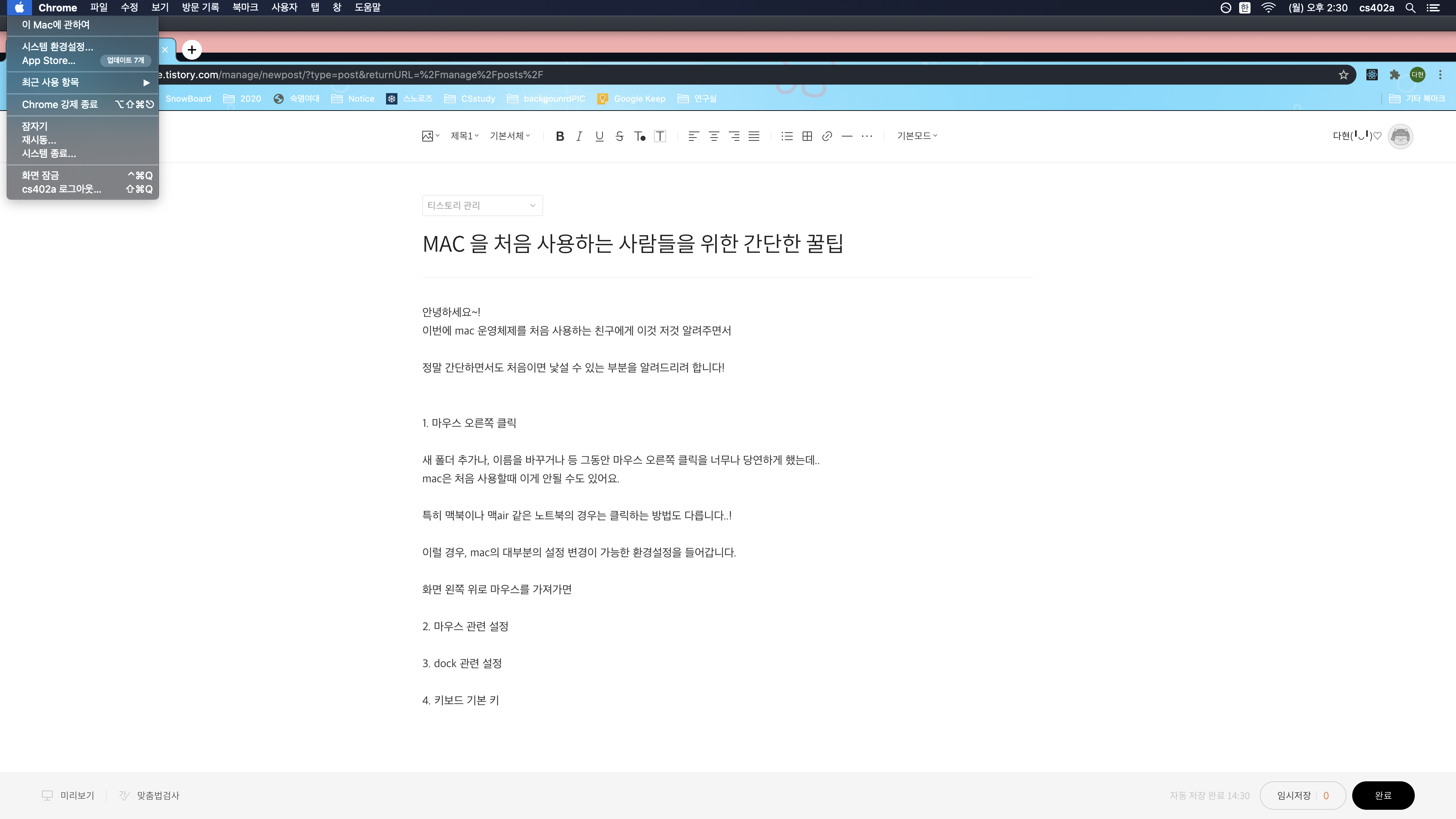 이번에 mac 운영체제를 처음 사용하는 친구에게 이것 저것 알려주면서