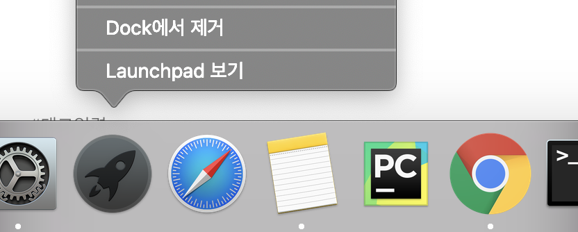 너무 많은 앱이 나타나는게 싫으면 앱 위에서 오른쪽 마우스 클릭 후 Dock에서 제거 를 누르면 항상 고정되는 앱이 사라집니다.