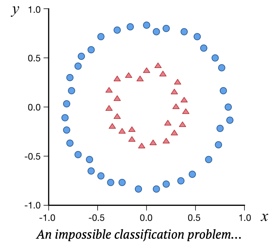 첫번째 그림과 같이 데이터가 분포해있으면 이는 나누기가 어렵다.
