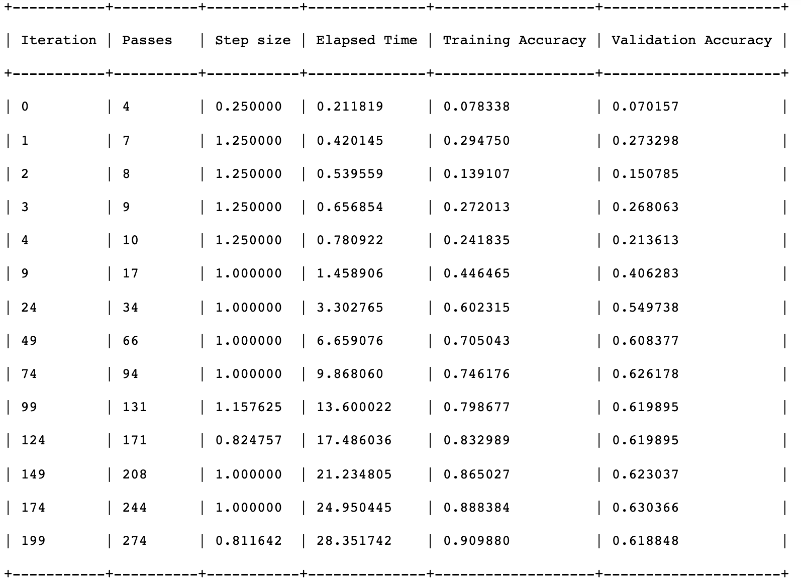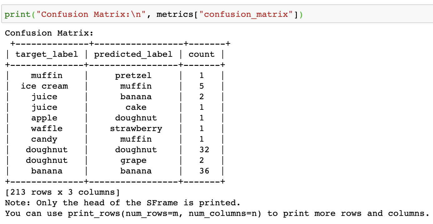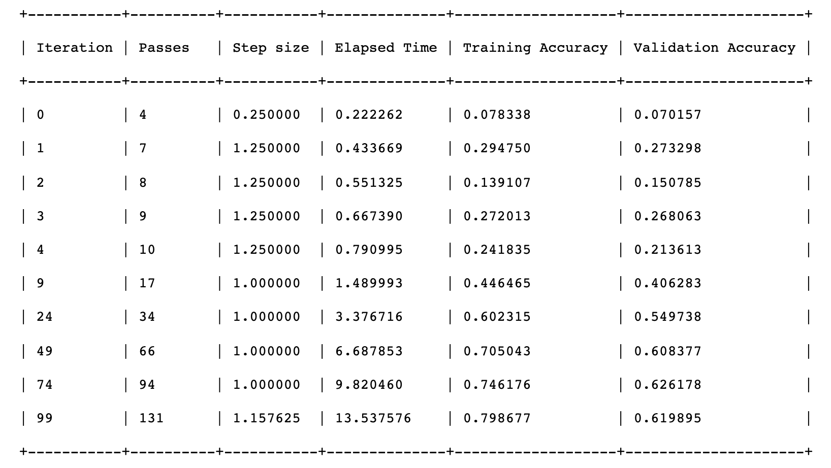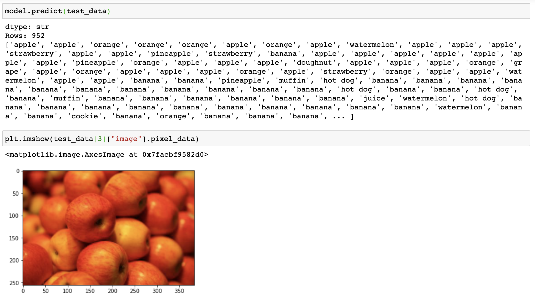 Turi Create의 장점은 SFrame에 data가 있으면 한줄의 코드로 모델을 train 할 수 있다는 것이다.