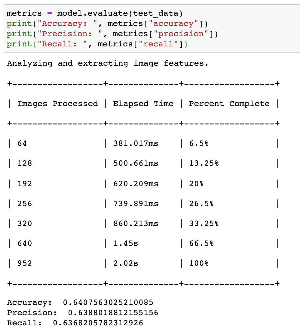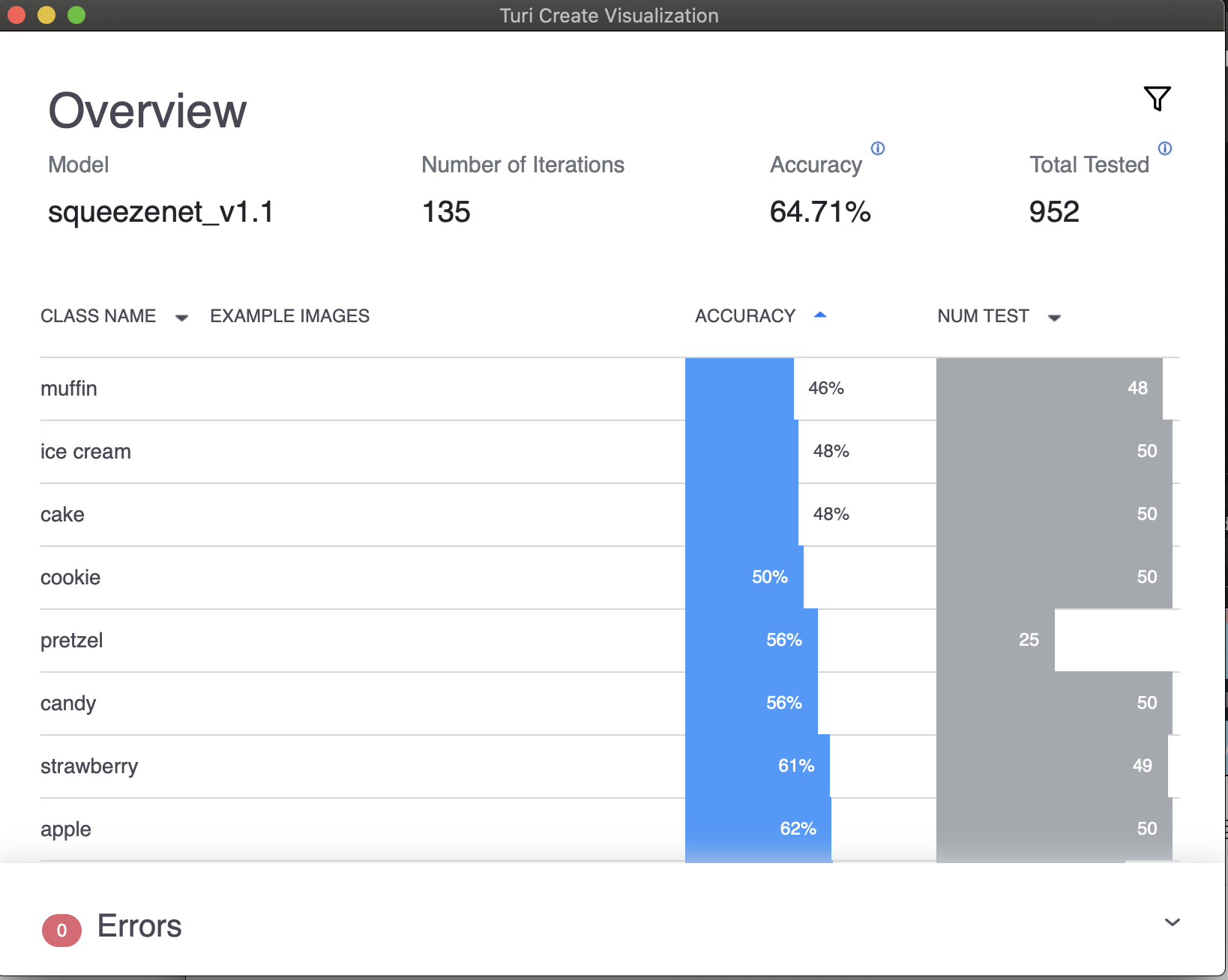 Turi Create is pretty easy to use, especially from a Jupyter notebook. It only requires a little bit of Python code. However, we weren’t able to create a super accurate model. This is partly due to the limited dataset.
