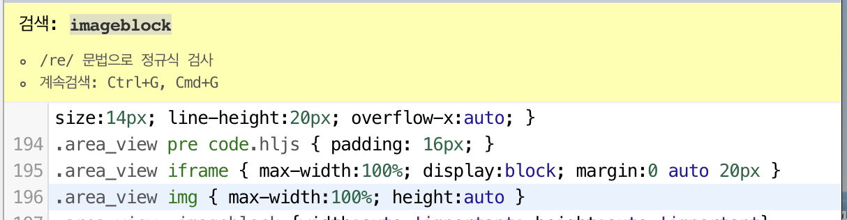 꼭 위 CSS 사진 속 한 코드를 클릭 후, 아래 사진처럼 된 상태에서 단어를 찾습니다.