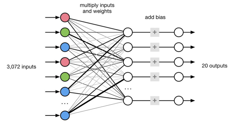 클래스 종류와 같이 20개의 output으로 나가는 snacks dataset의 층은 각 input이 서로 연결되어있다.